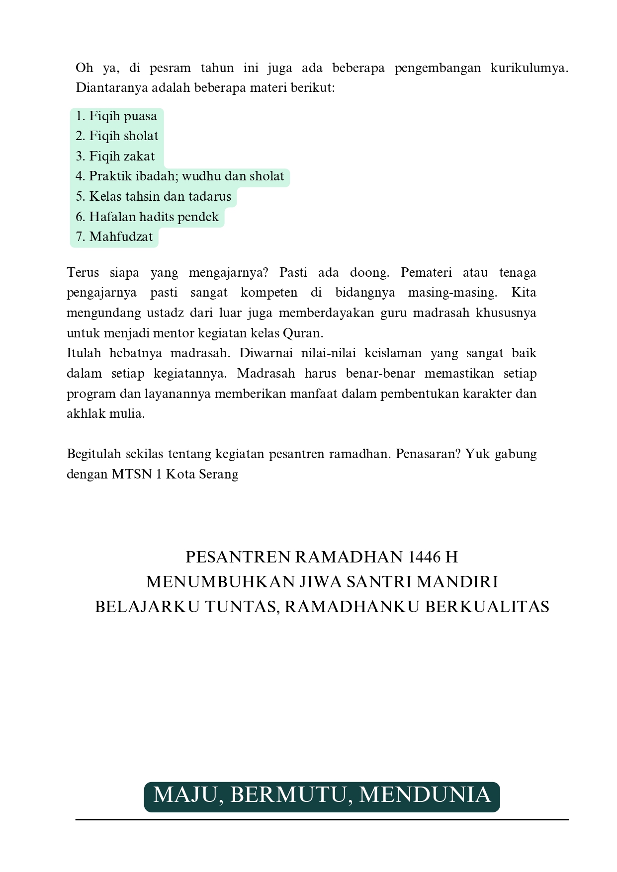 Belajar di Pesantren Ramadhan (Pesram) 1446 H
