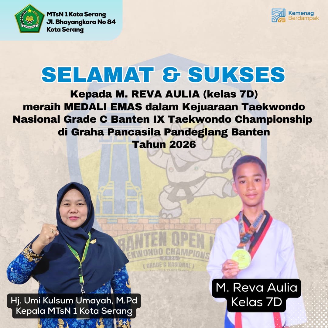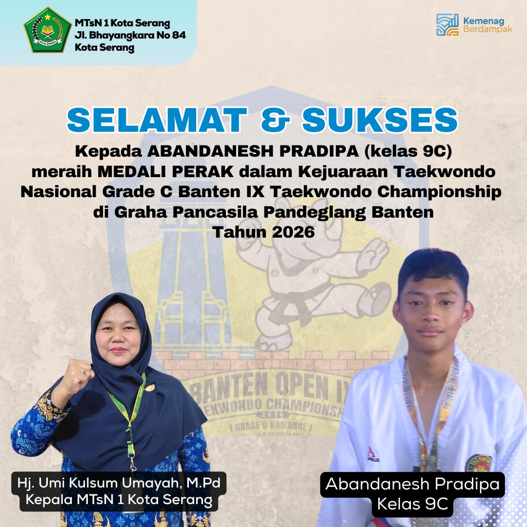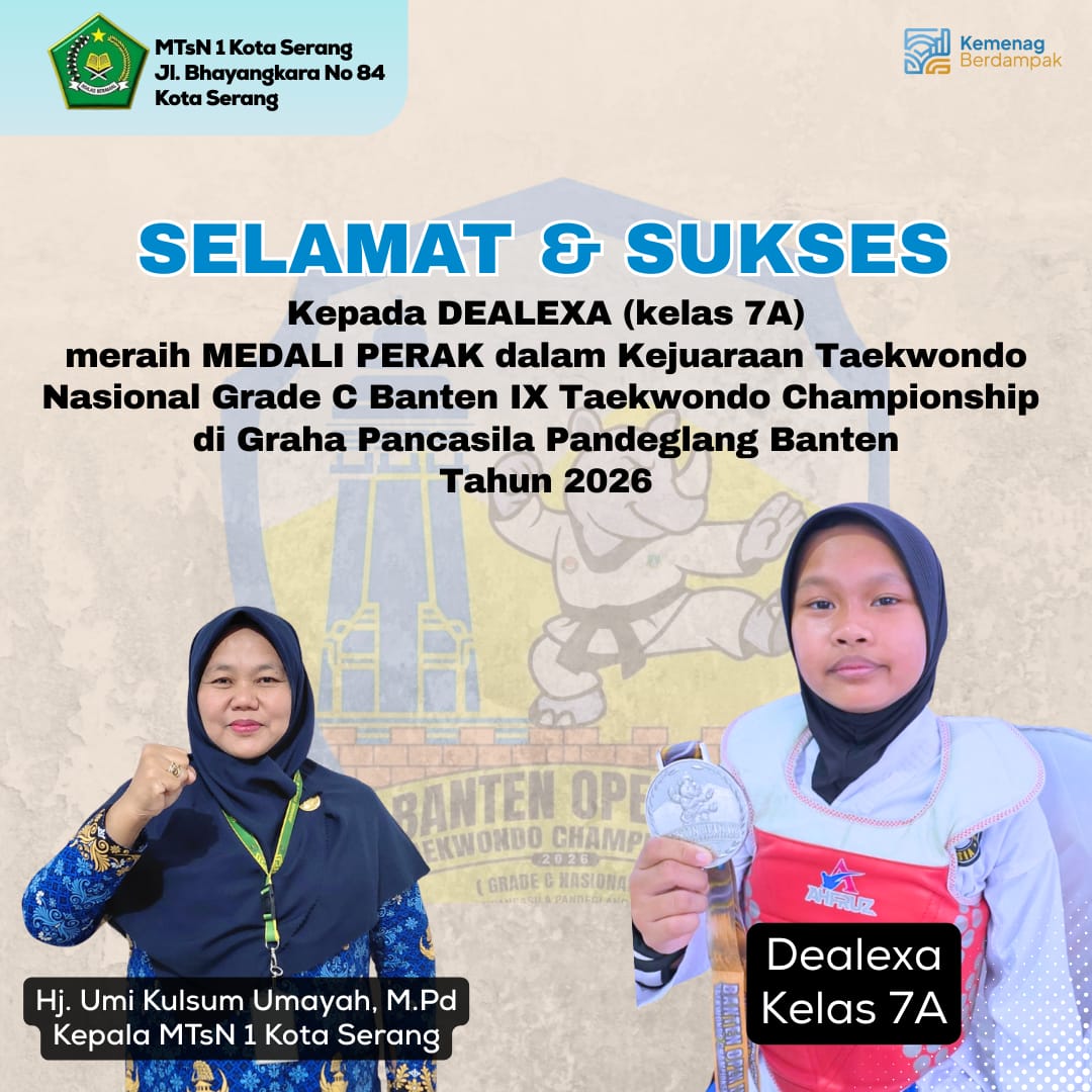 “Alhamdulillah, kami sangat bangga dengan prestasi yang diraih para siswa. Ini adalah hasil dari kerja keras, disiplin latihan, serta semangat pantang menyerah yang luar biasa. Prestasi ini membuktikan bahwa siswa MTsN 1 Kota Serang mampu berkompetisi dan berprestasi di tingkat yang lebih tinggi lagi,” ungkap Kepala MTsN 1 Kota Serang, Hj. Umi Kulsum Umayah, M.Pd..